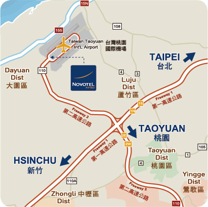 3.彰化員林地區—搭乘和欣客運彰化至桃園機場線至桃園機場,抵達桃園機場第二航站後,至一樓九號站牌於航站內再轉搭乘飯店之機場接駁巴士前往飯店。